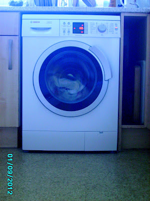 Since it was ordered on 27th July, we’ve been waiting patiently for the delivery of our Bosch washer.  We were told it would be a week, two at the most, before it came from the store.  As it turned out, the model we wanted is VERY popular—so popular that the manufacturer is having trouble keeping up with all the orders.  The small company we ordered it from had to wait until the manufacturer had enough to fill their order.  We got a phone call on Tuesday, (28thAugust) telling us it would be delivered on Wednesday, 29th August.