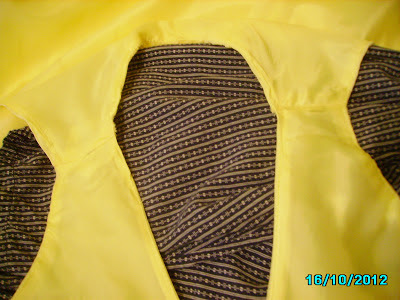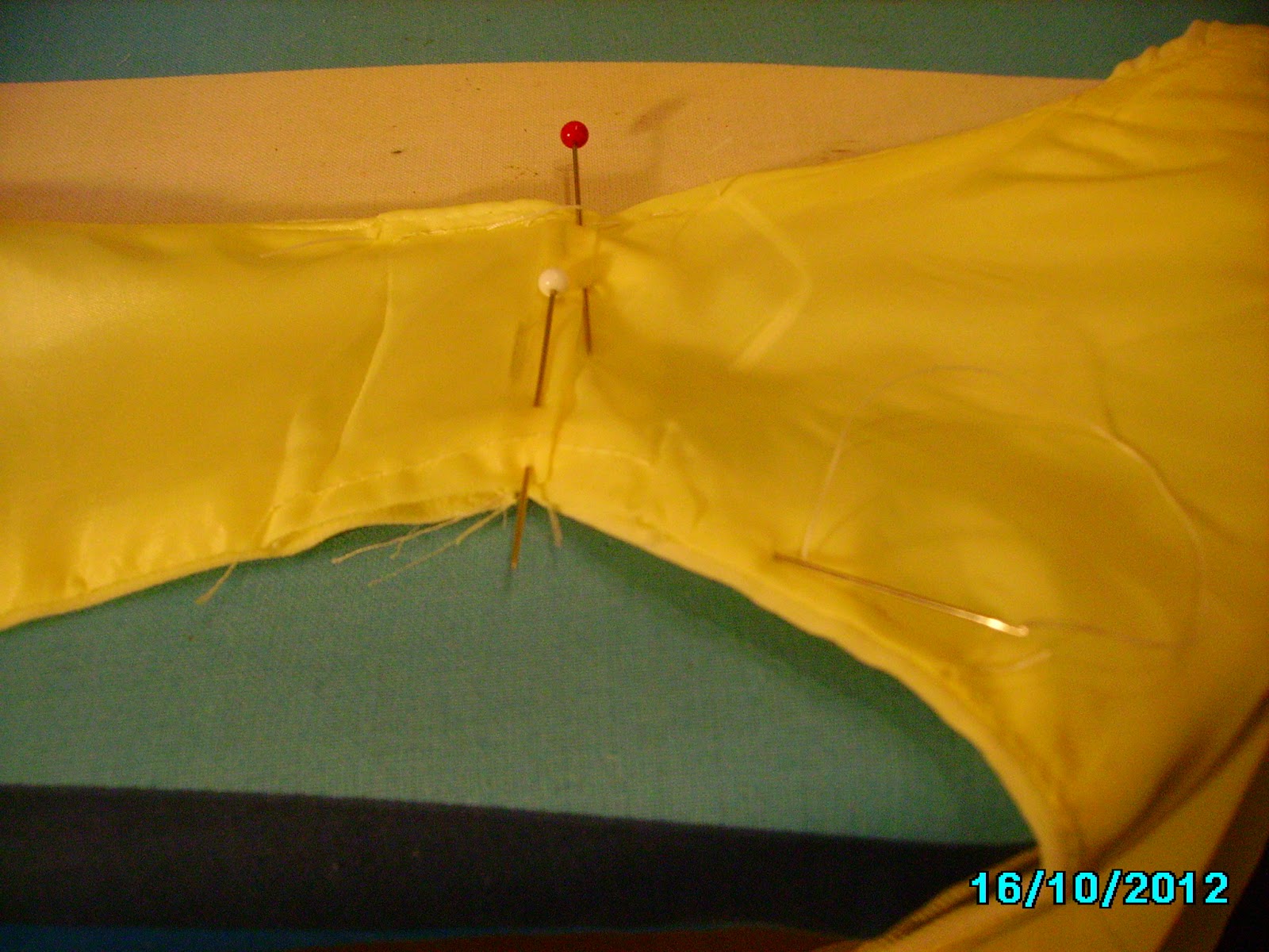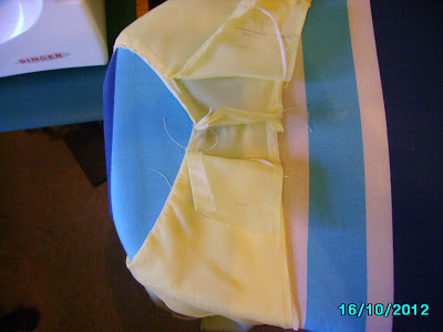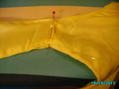 One shoulder lining pinned, and basting in process.