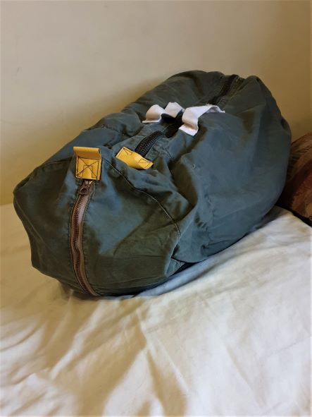 Each family member got a brand-new sleeping bag. Those sleeping bags were in a specially made cover, with a toiletry kit on the end. Each sleeping bag cover had a special tag with a different colour on it so that we could tell at a glance whose sleeping bag it was.