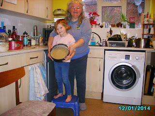 Sunday morning “Chantilly” went over to “Floss and Harry’s” flat to meet the youngest addition to our family; grandson, ”Enzo”. On 16th December, our 18th (yes, I wrote eighteenth) grandchild was born. “The Maverick” and I met him on 27thDecember. Since “Chantilly” and company live of the southern coast of England, this was her first opportunity to go and meet the little boy who was born exactly on his due date. “Mr. Biz” stayed here with the children and puppy.
