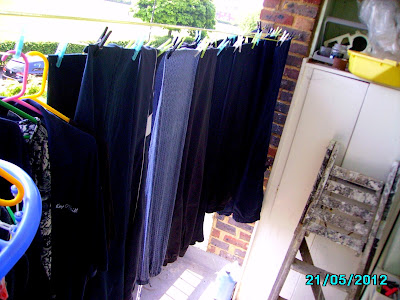 Then I sat down and thought about it. The average load of clothes takes about 80 to 90 minutes to dry. If we use the dryer twelve times a month that is 1,080 minutes a month that the dryer will run. Multiply 1,080 minutes per kilowatt, times the cost of a kilowatt—and over time that adds up. What if those kilowatts cost about £3.50 a month? Hmmm… I realised that line-hanging wet laundry did make a difference in the budget. The Maverick knows I am not keen on the idea—but he also knows that I take seriously his desire to be wise with our money; by practicing fugal habits.